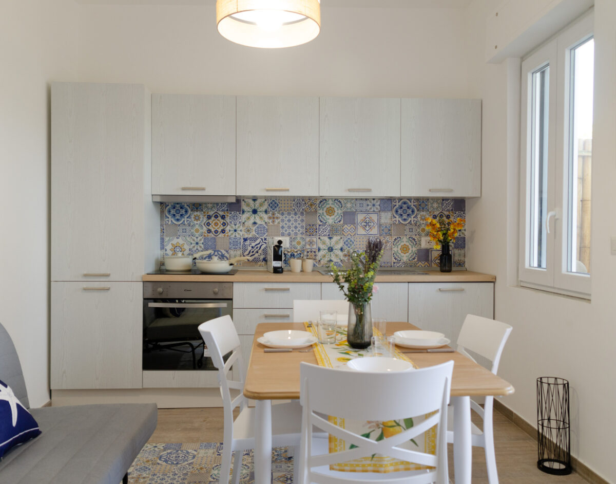 La zona giorno, molto accogliente e luminosa è corredata da una Smart TV (Netflix, YouTube, ecc…) connessione Wi-Fi ad alta velocità e un confortevole divano.
