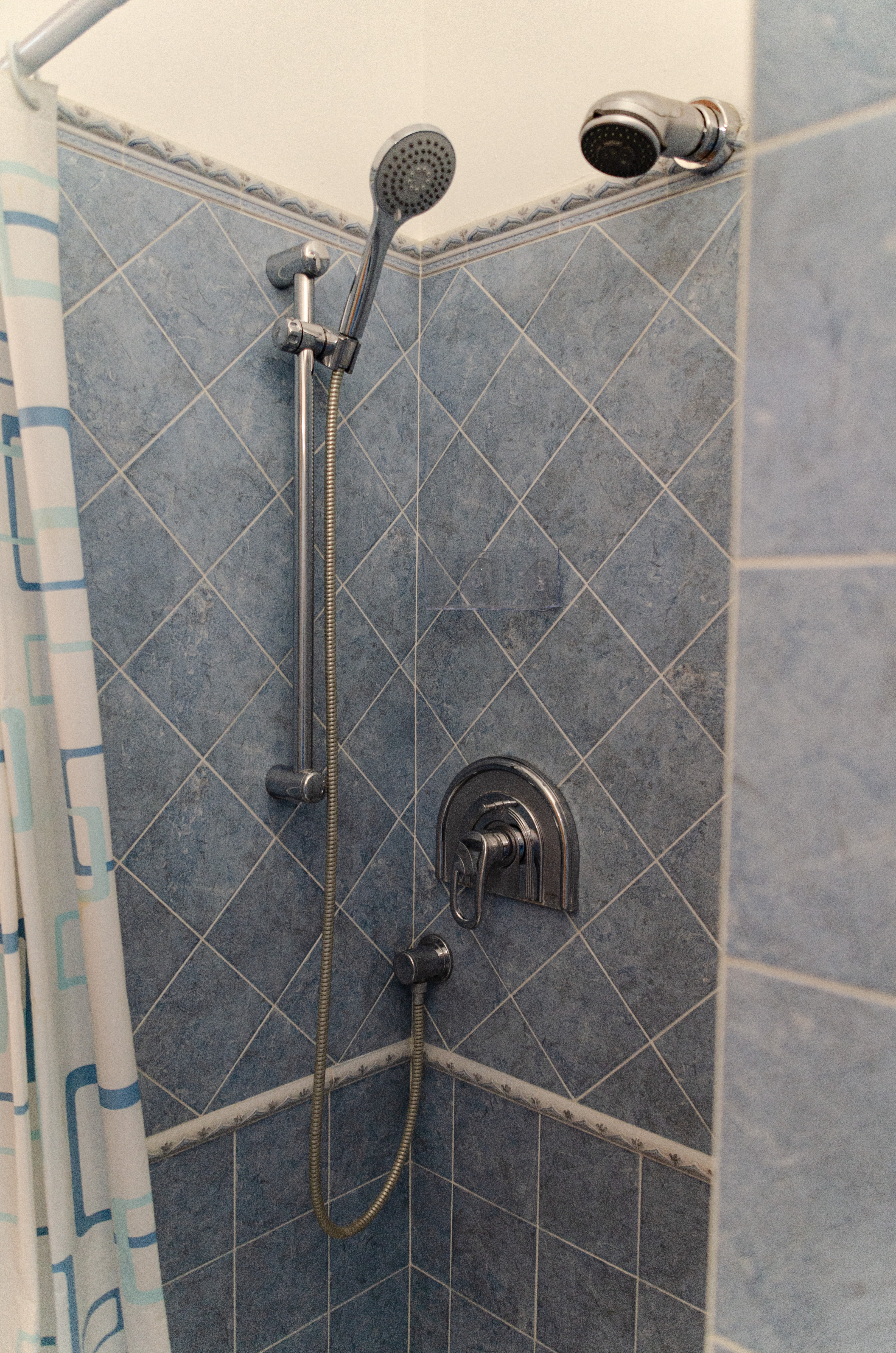 Il bagno ha una cabina molto spaziosa, asciugacapelli e un grande specchio.