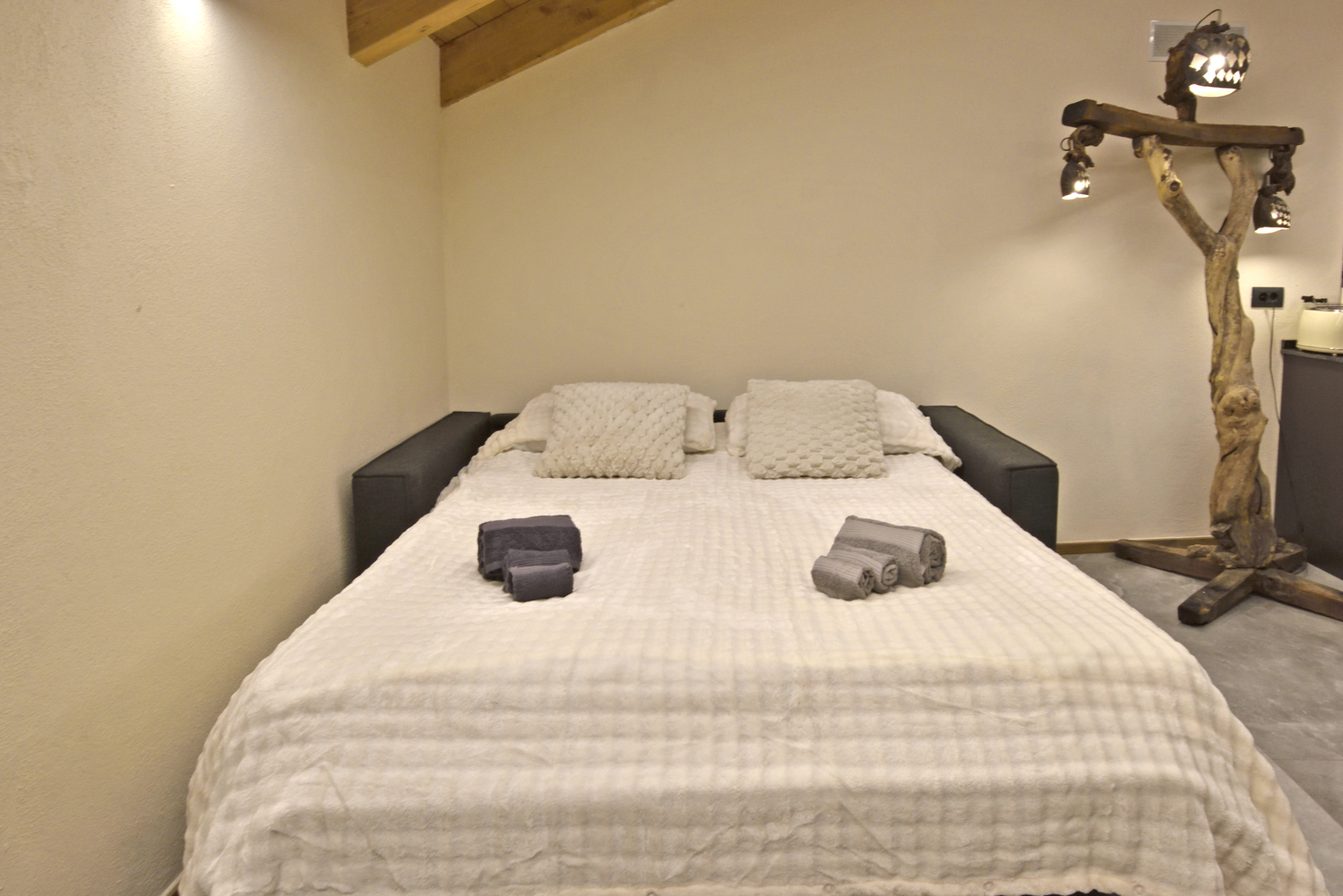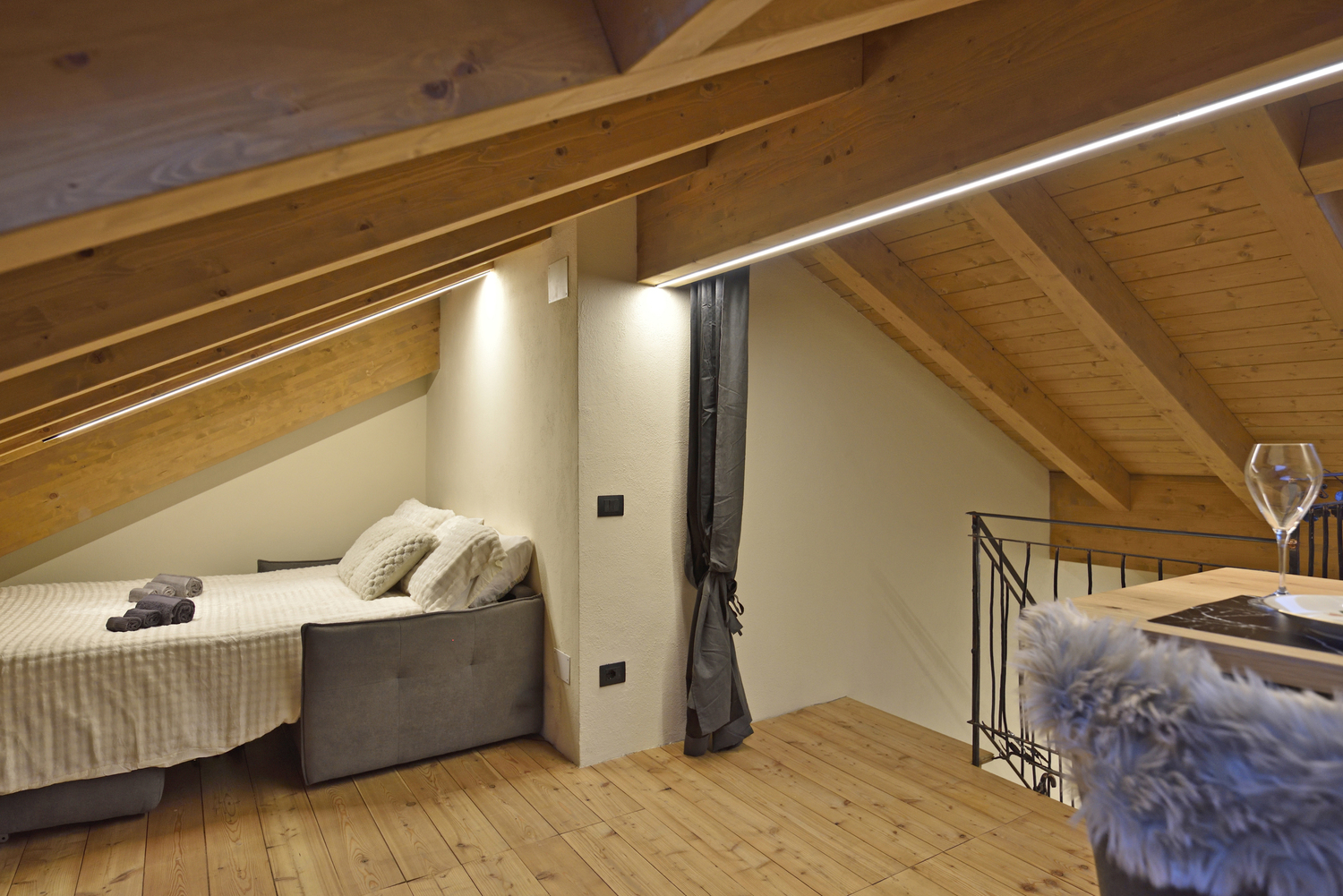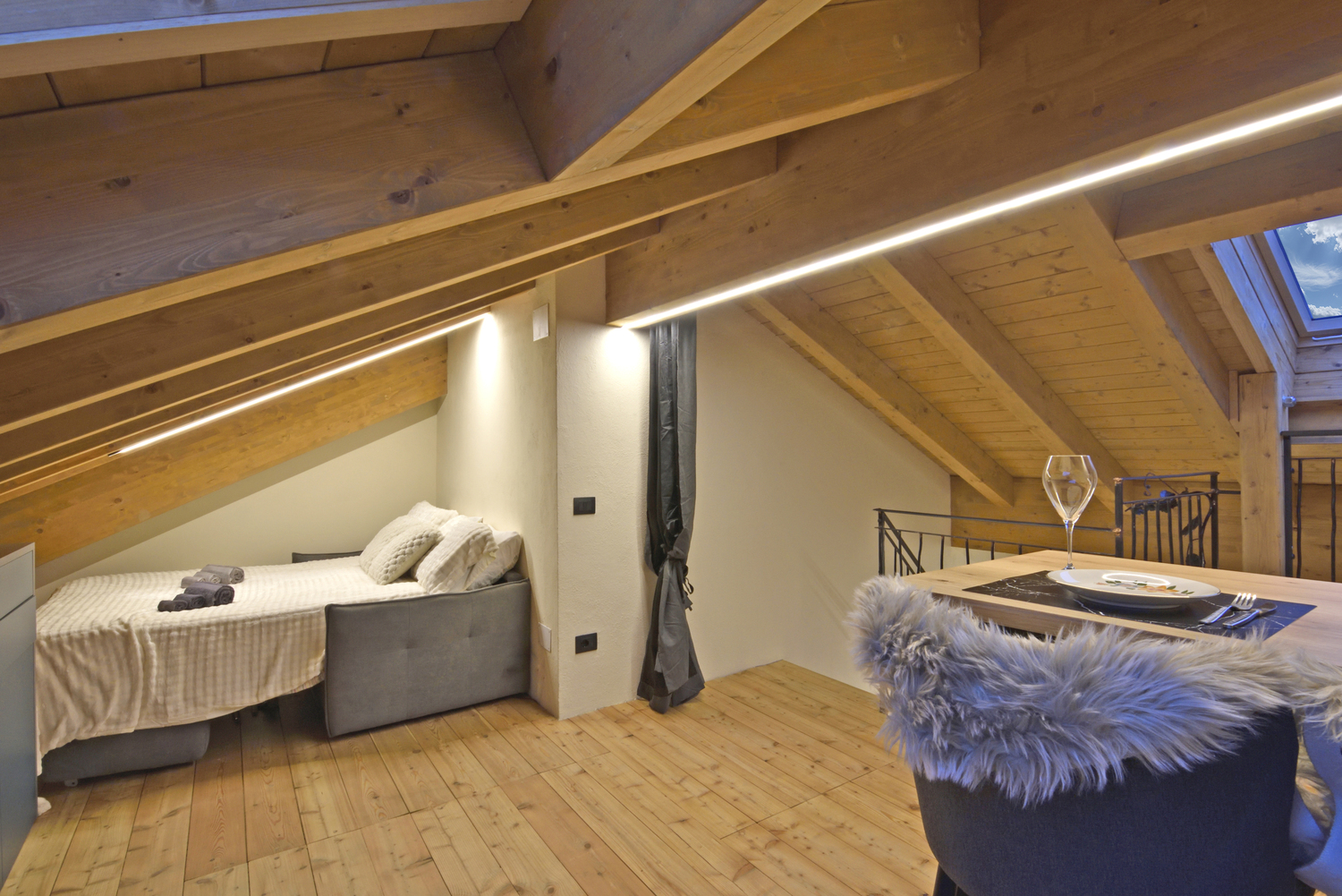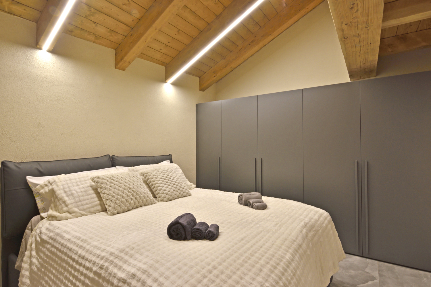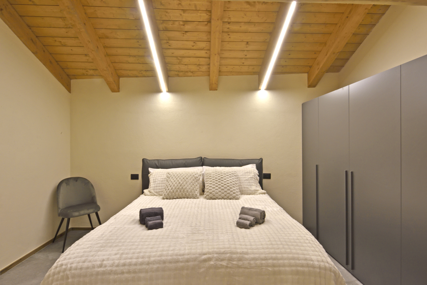 È composto da una master bedroom elegante e moderna, dotata di ogni comfort con splendido letto king-size per garantire un riposo d’eccellenza, 1 letto singolo e un comodo divano letto matrimoniale nella zona giorno, comodo e funzionale.